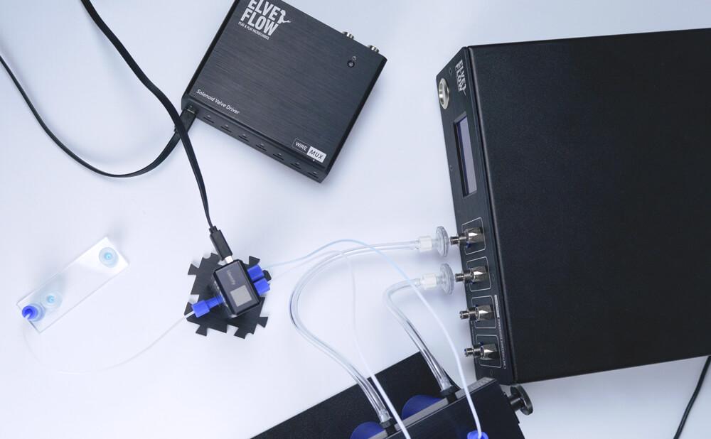 第二,在微流体尺度上,可以尽可能精确地调节流体性质以模仿体内细胞生长条件。OB1流量控制器、MUX液体分配阀和3/2阀以及图形界面操作软件ESI的有机结合,可以创建非常有效且可控的实验。