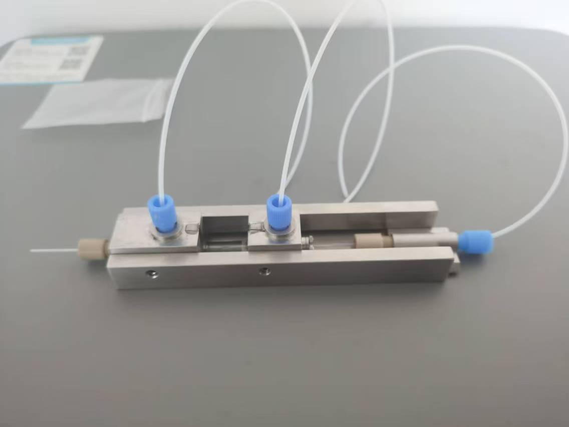 ● 同轴对准方式,玻璃毛细管尖端的相对距离可以调控,玻璃毛细管嵌套结构;