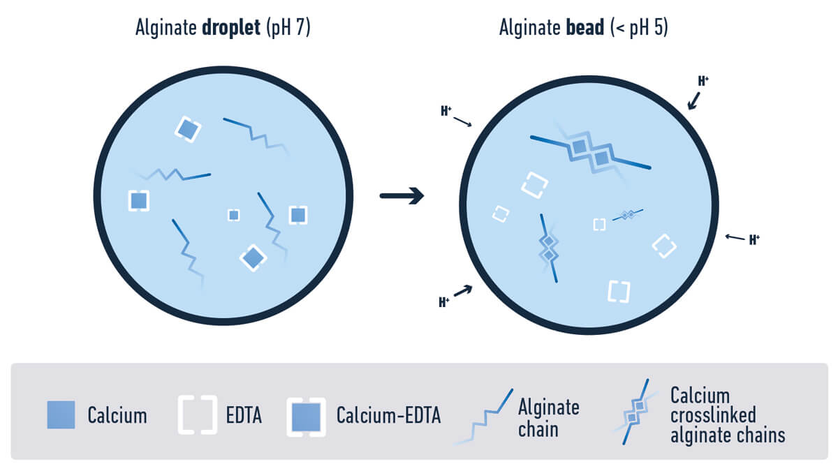 通常,藻酸盐微凝胶是通过交联剂在分散的藻酸盐水液滴内或之间的外部扩散或内部释放而制备的。另外,微珠的尺寸和形状通常被严格控制,因为对于许多用途来说,微珠在尺寸上是单分散的并且在形状上是球形的。