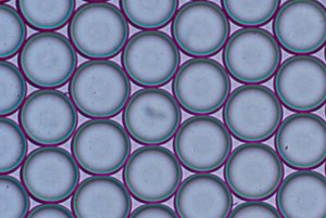 高度单分散的藻酸盐液滴,尺寸在50μm范围内。Elveflow team的实验结果。
