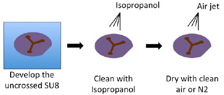 显影是未发生交联的SU-8光刻胶在溶剂中稀释的一个步骤。在这个步骤中,芯片的通道设计被转移到基底