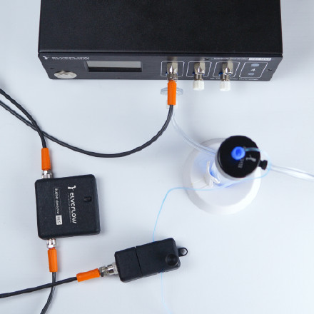 在微流控系统中添加除泡装置,以除去流向微流控芯片内液体中的气泡。比如如下的Elveflow除气泡装置。