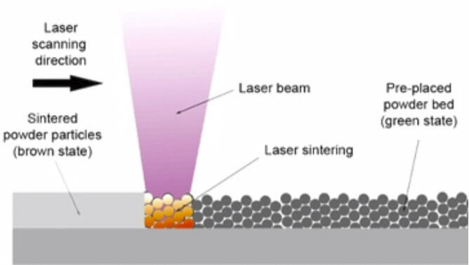 选择性激光烧结就像SLM一样,但有一个区别:激光束不会在材料的熔点加热,它会在材料熔点之前停止加热,并在粉状材料的晶粒之间产生内聚力,因此,热量会重新组合粉末材料之间的晶粒并产生内聚力。