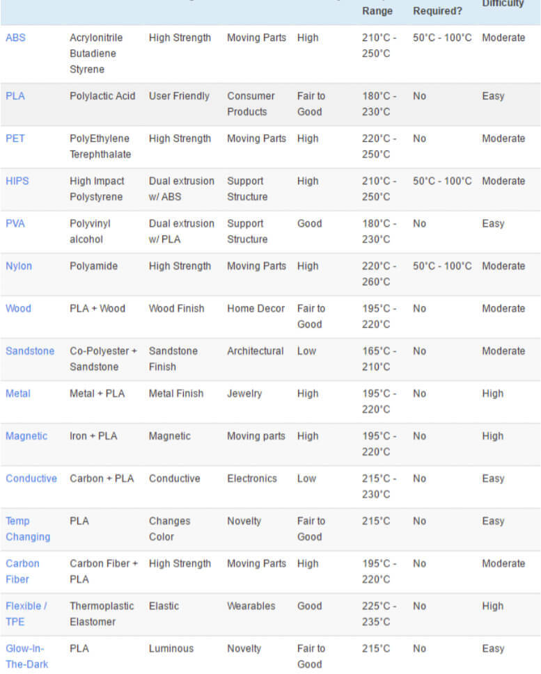 如果材料加热过多,那么将会得到粘稠的材料,其会泄露并挤压挤出机。如果材料加热不足,则长丝状材料将无法通过喷嘴。