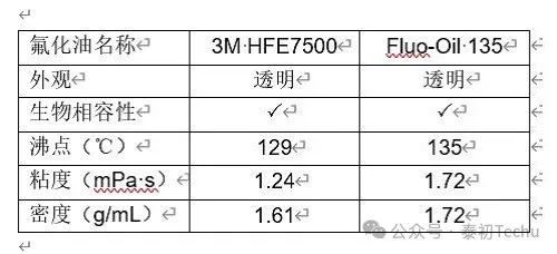 Fluo-Oil 7500和HFE7500氟油的参数比较如下所示: