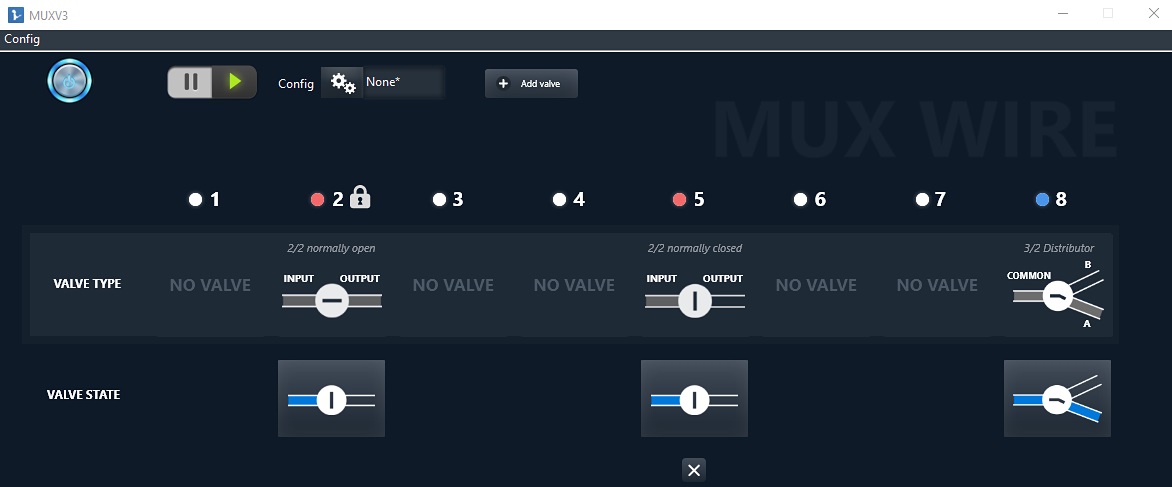 MUX WIRE V3版提供了三种类型的阀:2/2 NO,2/2 NC和3/2阀。