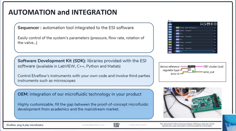 ESI操作软件可以通过同一个接口控制多达16台仪器。借助TTL触发器,您可以将Elveflow系统与实验室中使用的任何其他仪器(光学显微镜或任何电子仪器等)同步。Scheduler是一种用户友好的自动化运行的使用工具,可自动执行实验和方案的复杂步骤,节省您的宝贵时间。