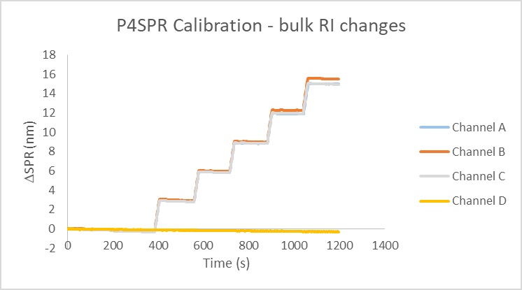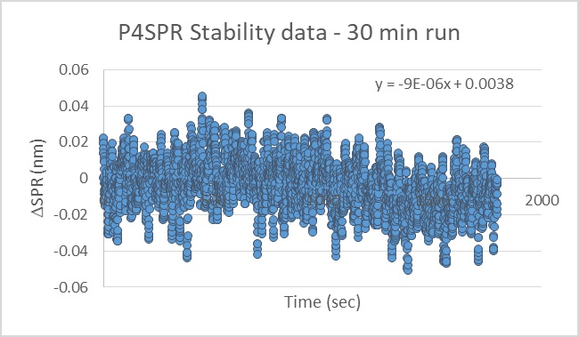 实验室内使用P4SPR对水溶液进行30分钟的稳定性测试