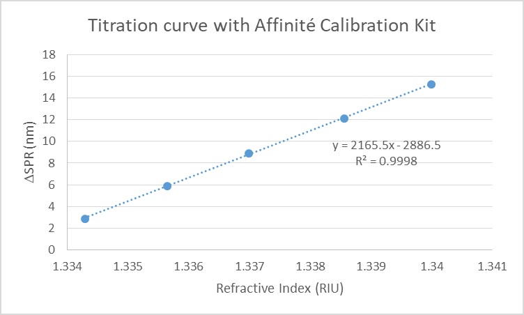 ●  Au传感器校准:                                    (2170±30)nm / RIU(n = 9)