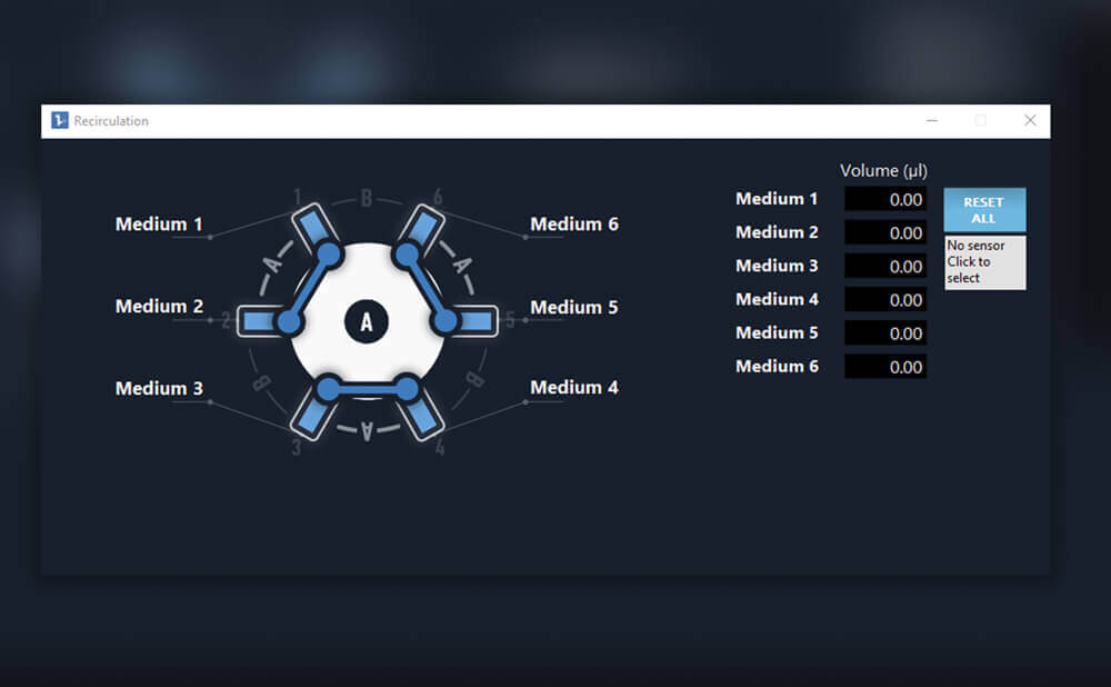 微流体循环阀MUX Recirculation是一个双向6-端口/2-位置切换阀,其允许在两个不同的设置配置(配置A和配置B)之间执行切换。主要应用是长时间的连续稳定的单向流体再循环。