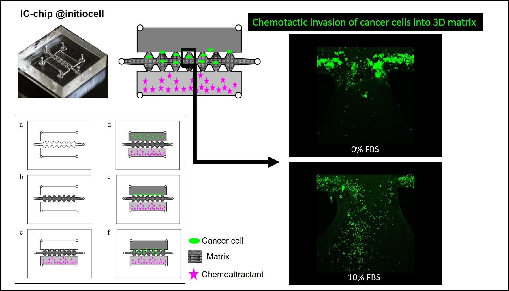 细胞迁移和侵入到3D基质在健康和疾病状态例如胚胎发育和癌症中都很重要。IC芯片提供了易于使用且与生理相关的微环境,可以以高时空分辨率直接可视化并定量评估细胞的迁移和侵袭。