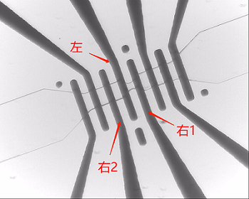 底部玻璃片上有8个金电极,电极间距相同,且8个电极可以自由搭配连接。