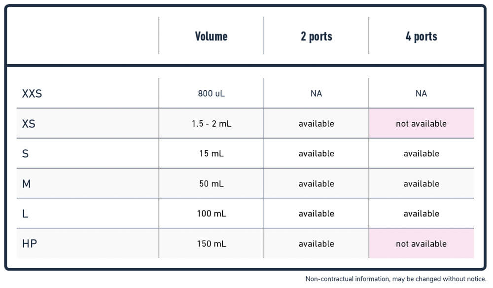 Elveflow提供了6种不同容积的储液池,其中有些有2个端口或4个端口型号。