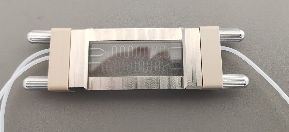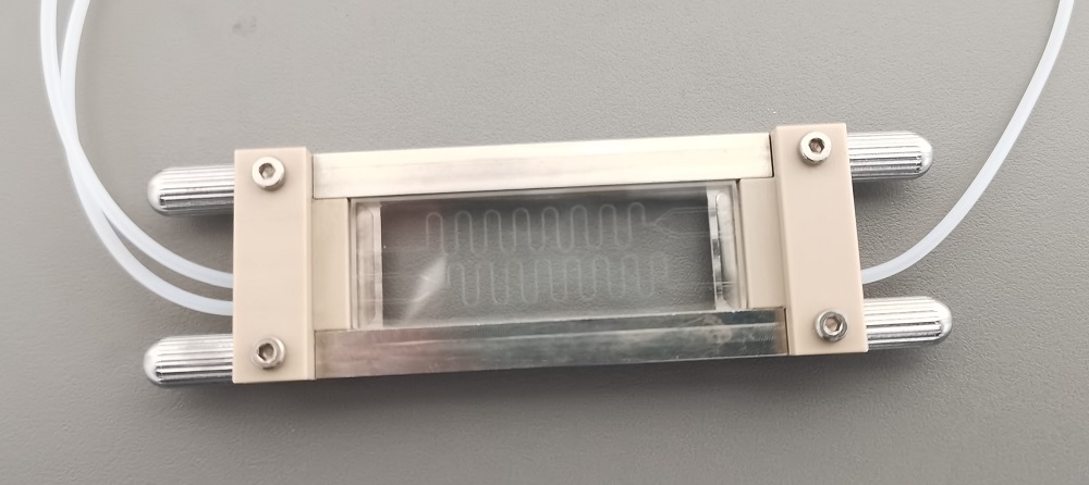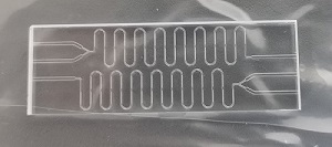 规格:玻璃材质,一个玻璃片包含2个独立的鱼骨混合器,等效于2个独立的混合器;鱼骨型结构,位于沟道上面,15个循环周期,鱼骨高度/沟道深度比值为0.5,配套侧面连接夹具,支持外径1/16英寸的PTFE导管连接。