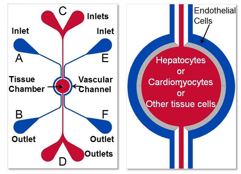 当前的体外模型在静态条件下使用细胞的2D单层或3D聚集体来研究药物毒性。这些模型无法重现体内的生理特征,例如被研究的特定器官的形态大小,生理血流和细胞(生物)组成。其他微流体模型采用基于膜的上下两室架构,固有地限制了关键的所需功能,例如实时可视化以及同时分析多细胞培养物的能力。