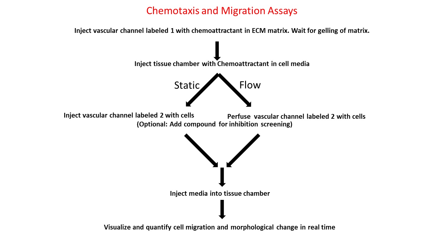 您可以创建基于微流体3D细胞的实验平台,以在生理上现实的肿瘤微环境中进行定量评估。该系统能够实时可视化和分析细胞-细胞和细胞-药物相互作用,包括(a)跨血管壁运输,和(b)递送至肿瘤。使用这些模型可以使肿瘤学研究的许多领域受益。这些包括:(1)理解肿瘤微环境(细胞活力,增殖,侵袭以及肿瘤基质和肿瘤-内皮相互作用)的基础研究; (2)筛选药物的功效,毒性和渗透性。