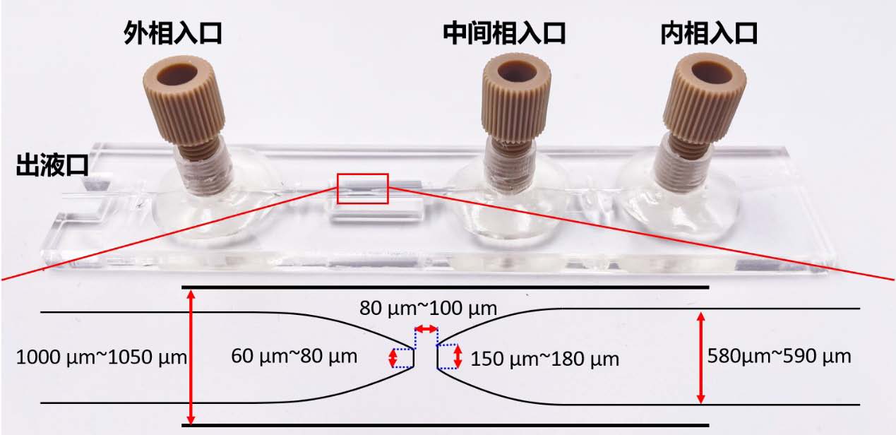 (4)液滴包裹的同轴双乳化液滴微球芯片