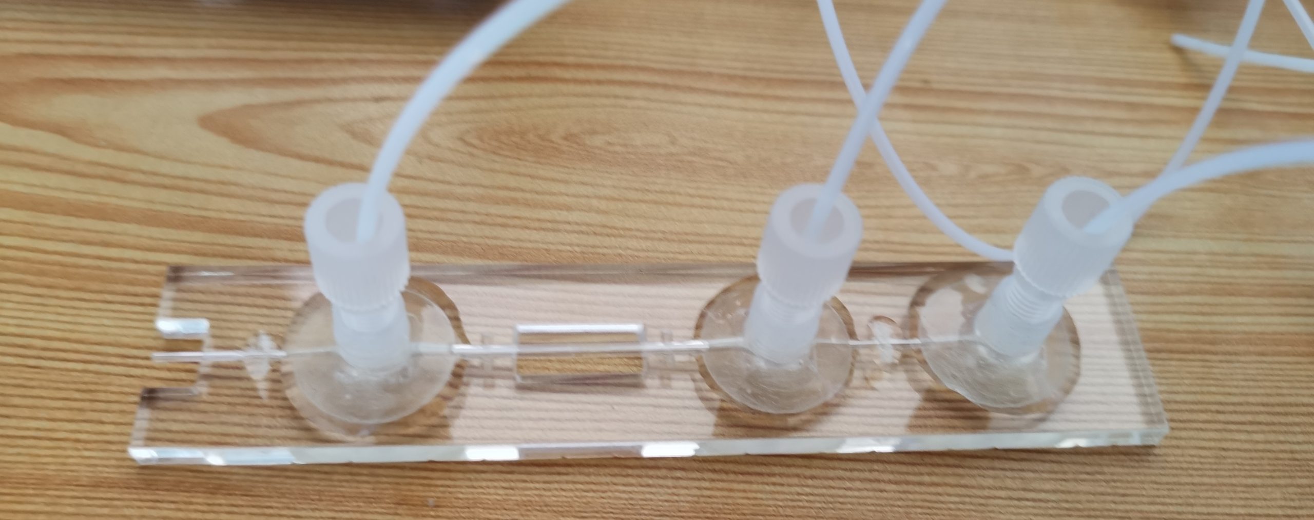 亚克力版同轴锥型毛细管双乳化液滴微球芯片的连接装置(示例)